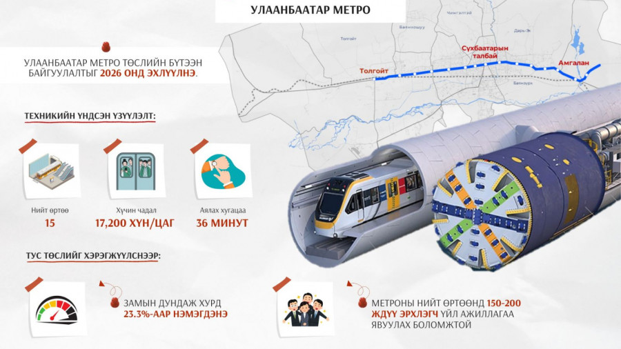 Улаанбаатар метро төслийн бүтээн байгуулалтыг 2026 онд эхлүүлнэ