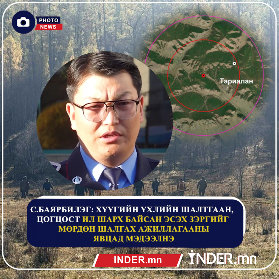 Мэдээллийн дагуу Төрийн чиг үүрэг бүхий байгууллага болон иргэдийн хамтарсан эрэн хайх ажиллагааг явуулсан. Хүүгийн цогцсыг /2025.09.25/ 16 цагийн орчимд анх алга болсон газраас явганаар шулуун явахад 9 км, бартаа саад ихтэй, автомашинаар явахад 18 км-ын зайтай газраас олсон. Цогцос олдсон газар хамгаалалт авч, шалгалтын ажиллагааг үргэлжлүүлж байна.