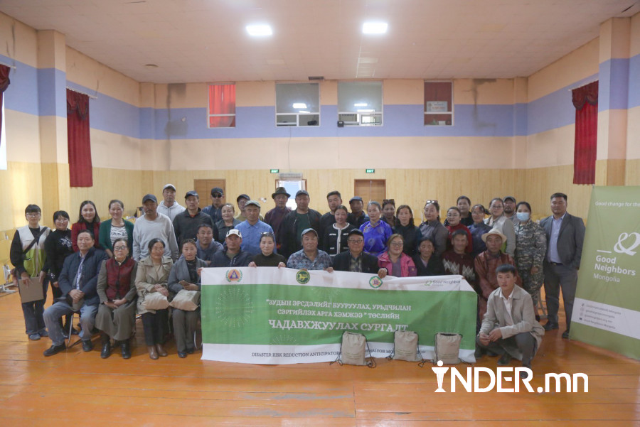 “Гүүд Нэйборс” олон улсын төрийн бус байгууллагын санаачлан хэрэгжүүлж байгаа “Зудын эрсдэлийг бууруулах, урьдчилан сэргийлэх төсөл”-ийн хүрээнд Онцгой байдлын ерөнхий газар болон "Гүүд Нэйборс” олон улсын төрийн бус байгууллага, Хөдөө аж ахуйн их сургууль хамтран малчин өрхүүдийн зудын эрсдэлд өртөмтгий байдлыг бууруулах зорилготой малчин иргэдэд зориулсан чадавхжуулах сургалтыг зохион байгууллаа.