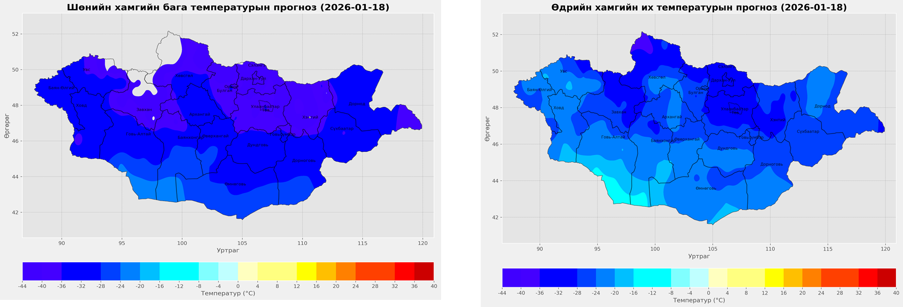 2026 оны 01 дүгээр сарын 18-ны 20.00 цагаас 19-ний 20.00 цаг хүртэлх цаг агаарын урьдчилсан мэдээ: