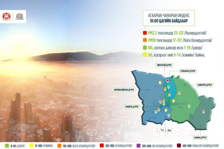 Хүрээлэн буй орчны бохирдлын тэргүүнд эгнээнд тоос, тоосжилтын асуудал зүй ёсоор бичигдэж байна. Агаарын бохирдлын хэмжээг бүтэн жилээр тооцвол 40 хувь нь агаарын хий, 60 хувь нь тоос, тоосонцор байдаг юм байна. Уг нь агаар дахь тоос тоосонцрын хэмжээ 10 мк-оос бага байх ёстой. Агаарын чанарын индексийг харая. 2026.01.23-ны 10.00 цагийн байдлаар PM2.5 тоосонцор 221 байна. Ингэхэд дэлхийн хотуудын агаар цэвэршсээр байгаа. Жишээ нь, Хойд Хятад болон Өмнөд Азийн зарим хотын тоосжилтын түвшин тогтмол буурсаар байна. Европ, Америкийн хотуудад тоосжилтын хэмжээ маш доогуур. Бүр цөлийн бүсэд орших АНУ-ын зарим хотод л гэхэд хамгийн өндөр нь 60-100 мк байдаг гэжээ.