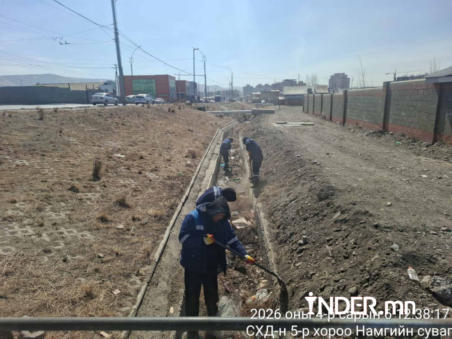Үерийн хамгаалалтын барилга, байгууламжийн цэвэрлэгээний ажлын хүрээнд Геодези, усны барилга байгууламжийн газраас Сонгинохайрхан дүүргийн 5, 27 дугаар хороонд байрлах Намгийн сувгийг цэвэрлэж, суваг дээгүүрх гарц гаргалгааны доогуурх мөс, лагийг гар молдок ашиглан цэвэрлэлээ. Геодези, усны барилга байгууламжийн газар нийслэлийн хэмжээнд 165.7 км үерийн хамгаалалтын барилга байгууламжийн байнгын ашиглалтыг хариуцан ажилладаг. 2026 оны байдлаар 32 байршлын 34.8 км үерийн хамгаалалтын барилга байгууламжаас нийт 42.7 мянган шоо метр лаг хагшаас цэвэрлэхээр төлөвлөн ажиллаж байна.